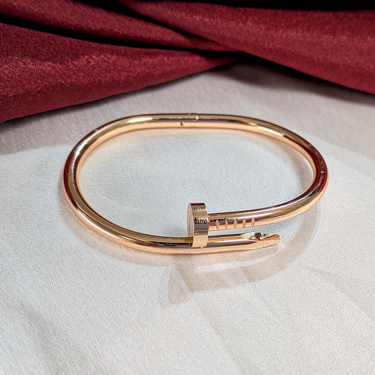 Bold, modern, and effortlessly iconic — the Nail Bracelet is a true symbol of edgy sophistication. Crafted in a sleek nail-inspired design and finished with luxurious 18K gold plating, this bracelet adds a powerful statement to your wrist.Made with premium stainless steel and coated with anti-tarnish protection, it offers long-lasting...