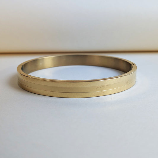 Elevate your style with this Gold Plated Luxury Grid Pattern Engraved Designer Stainless Steel Bracelet for Men. Crafted with precision, it features an elegant geometric grid engraving that exudes sophistication and modern charm. The smooth, polished surface reflects a premium golden shine, while the intricate texture adds depth and distinction....