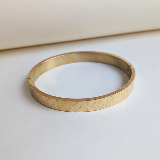 "This Luxury Gucci Brand Inspired Designer Geometric Engraved Stainless Steel Bracelet for Men is a stunning blend of sophistication, craftsmanship, and modern design. The intricate geometric engraving reflects premium artistry, while the mirror-polished gold plating exudes elegance and luxury reminiscent of iconic Gucci-inspired style. Crafted from high-quality stainless steel with...