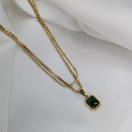 Discover effortless sophistication with this stunning gold tone layered Pendant. Designed for the modern woman and girl, this set blends minimalist style with a vibrant pop of color. The highlight is a striking emerald green crystal pendant, in a lustrous gold bezel and beautifully paired with two separate yet harmonized...