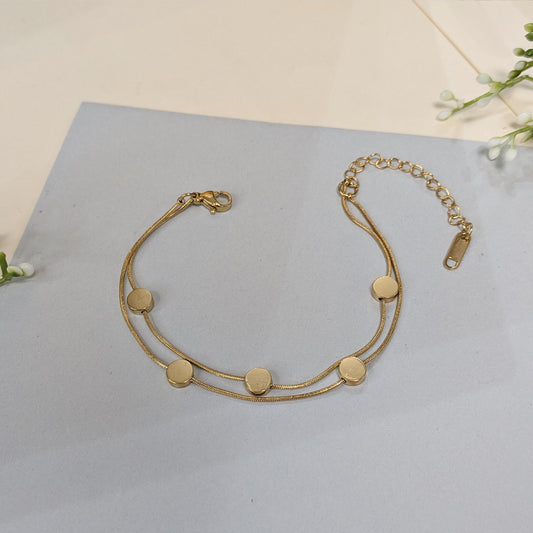 Elevate your everyday style with the Gold Finish Minimalist Disc Charm Bracelet for Women (Anti-Tarnish). Featuring a sleek chain adorned with a simple, polished disc charm, this bracelet embodies understated elegance and modern sophistication. The radiant gold finish adds a luxurious shine, while the anti-tarnish coating ensures long-lasting durability and...