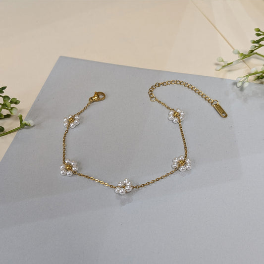 Bloom with elegance and grace wearing the Gold Finish Daisy Pearl Bracelet for Women (Anti-Tarnish). Inspired by nature’s delicate beauty, this bracelet features charming daisy motifs paired with lustrous pearls, creating a soft yet luxurious look. The radiant gold-toned finish enhances the floral details, while the pearls add a timeless...