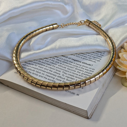 Elevate your style with this Elegant Gold Coil Choker Necklace, designed for women who love bold and classy fashion. Crafted with a high-quality coil design, this choker sits beautifully around the neckline, giving a sleek and modern touch to any outfit, The smooth gold finish adds a luxurious shine, while...