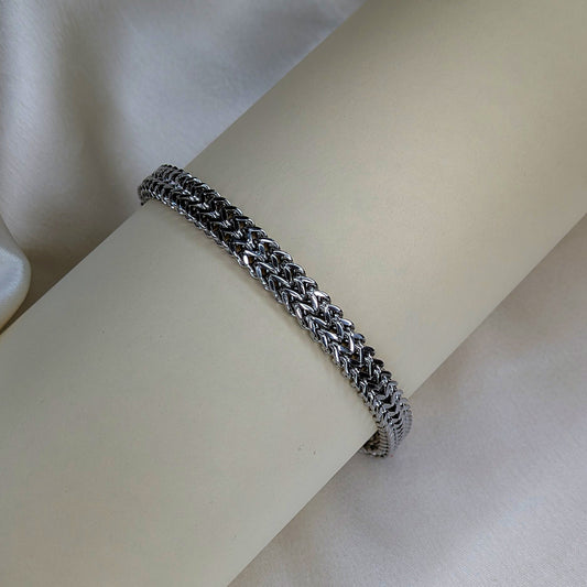 Elevate your everyday style with this sleek and modern stainless steel woven chain bracelet. Designed with a refined braided mesh pattern, it offers the perfect balance of durability and elegance. The tightly interlinked design gives the bracelet a bold, high-quality appearance while ensuring a smooth and comfortable fit on the...