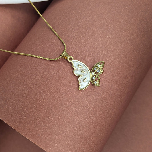Embrace elegance and grace with this Gold Plated Mother of Pearl & AD Stone Butterfly Charm Pendant For Girls & Women, crafted for girls and women who love delicate and stylish jewellery. Featuring a beautifully sculpted butterfly design, the pendant combines shimmering crystals with a soft Mother of Pearl finish,...