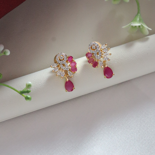 Exude royal charm with the Ruby Royale Drop Pendant Set, featuring rich ruby stones paired with dazzling American diamonds in an elegant drop design. This pendant and earring set is perfect for festive occasions, parties, or gifting someone special. Stylish, durable, and timeless—an essential addition to your jewelry collection.