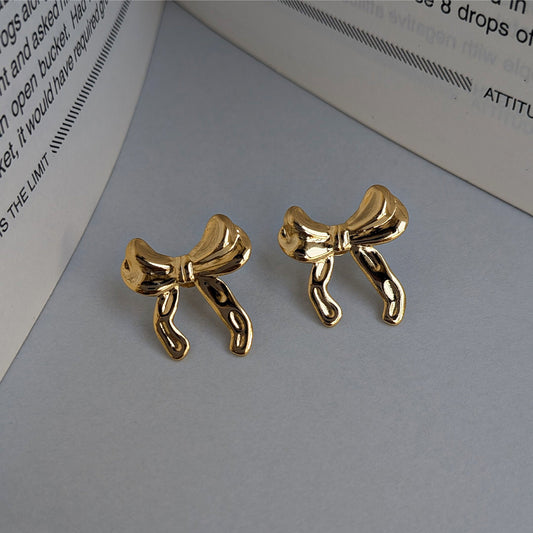 A charming addition to your jewelry collection, these glossy gold ribbon bow earrings are designed to radiate grace and charm. Their artistic shape and polished finish make them ideal for brunches, parties, or gifting someone special. Lightweight and anti-tarnish for everyday wear.