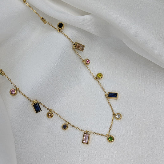 Add a touch of elegance and color to your everyday style with this beautiful Multicolor Stone Pendant for Girls and Women. Designed with a sleek and minimal chain, this necklace features a vertical arrangement of vibrant multicolor stones that create a stylish and eye-catching look, Crafted from high-quality stainless steel,...