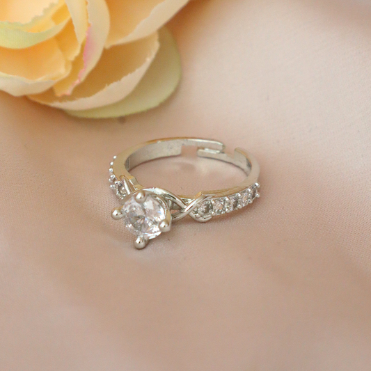 Celebrate timeless elegance with this stunning infinity-curve ring, featuring a dazzling American Diamond as the centerpiece. The gracefully intertwined band, accented with shimmering stones, symbolizes eternal love and commitment. Crafted from high-quality silver, this sophisticated piece combines modern design with classic charm, making it the perfect accessory for special occasions...