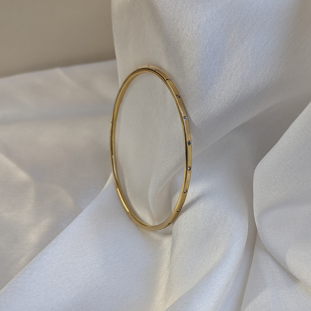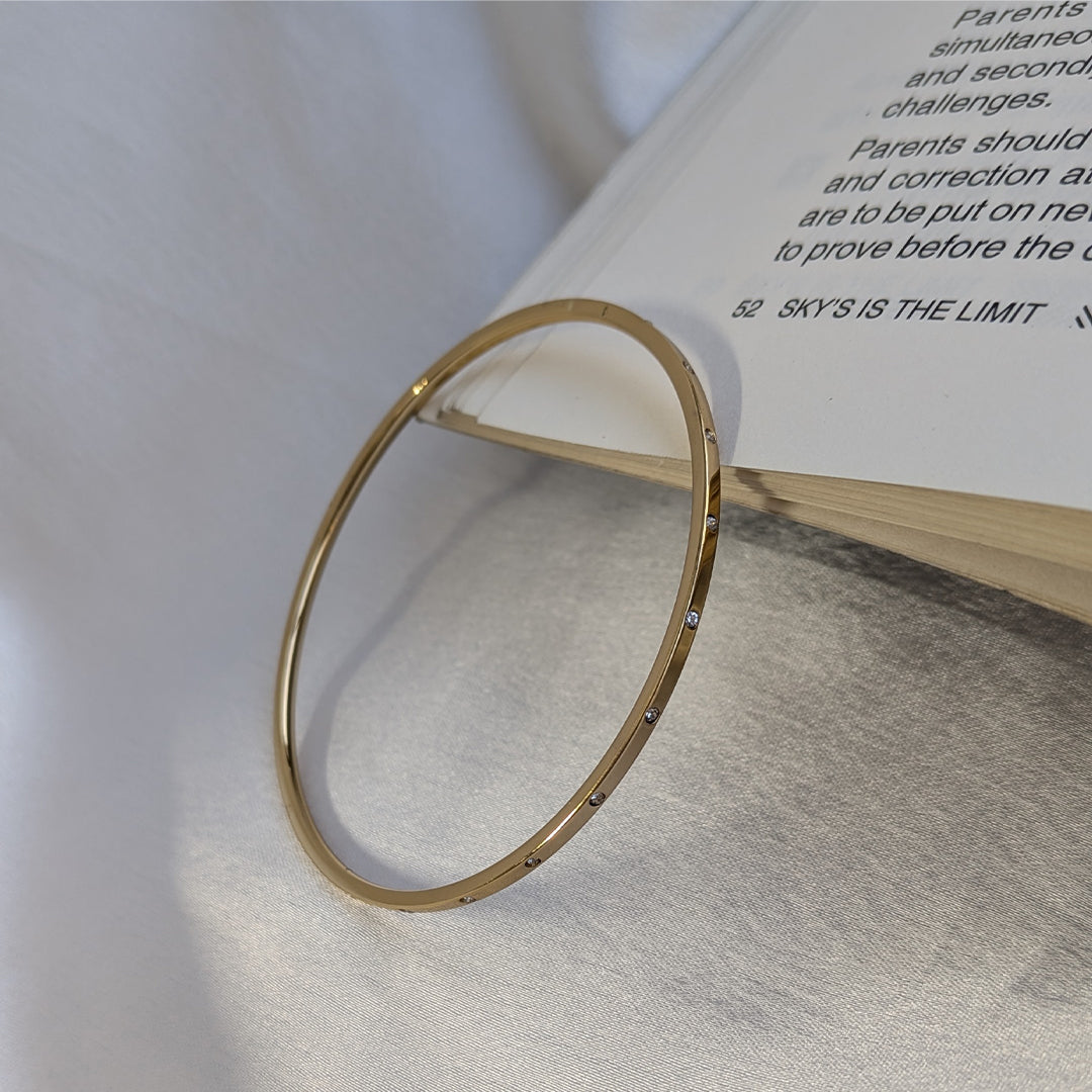 Elevate your everyday style with this Gold Plated Slim AD Studded Classic Bracelet. Designed with a sleek and minimal silhouette, it features delicately placed sparkling AD stones that add just the right touch of elegance and shine. Lightweight, refined, and effortlessly stylish, this bracelet pairs beautifully with both casual and festive outfits. A timeless must-have for girls and women who appreciate subtle sophistication in their jewellery collection.