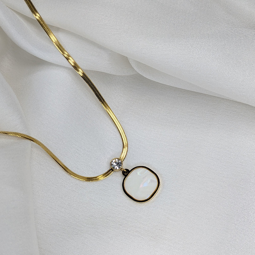 Gold Plated Mother of Pearl & Crystal Accent Pendant for Women