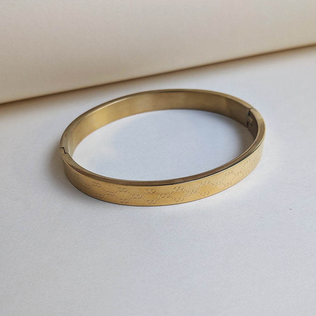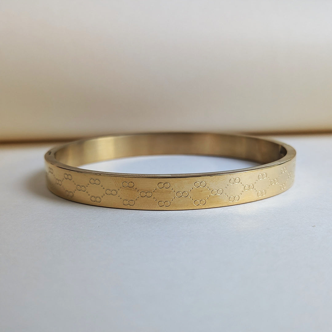 "This Intricately Engraved Geometric Design Stainless Steel Bracelet for Men & Women showcases a stunning fusion of modern art and timeless luxury. Each intricate detail is precisely etched to form a refined geometric pattern that reflects light beautifully, adding subtle depth and character to the piece.