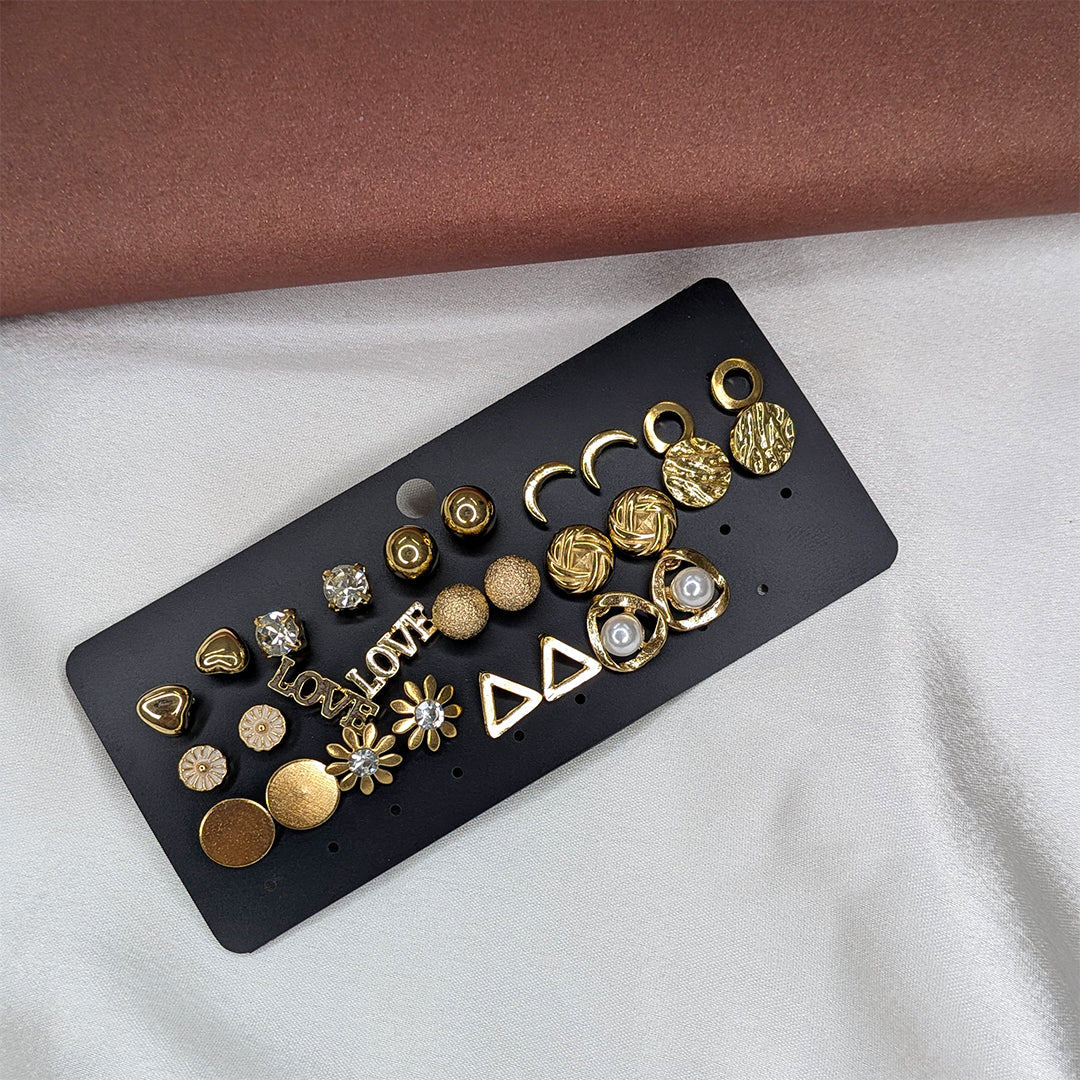 Upgrade your accessory collection with this trendy multi-design stud earrings combo set. Featuring a variety of stylish patterns, including classic shapes and modern designs, this set lets you mix and match earrings to suit different outfits and moods. Lightweight and comfortable to wear, these stud earrings are perfect for daily use as well as special occasions such as parties, birthdays, celebrations, and festive events. A versatile combo set that adds charm and elegance to both casual and ethnic looks, making it an excellent gifting option for women and girls.